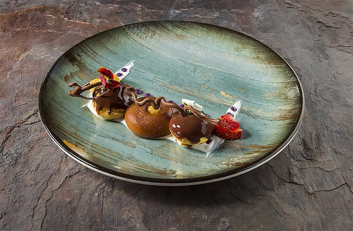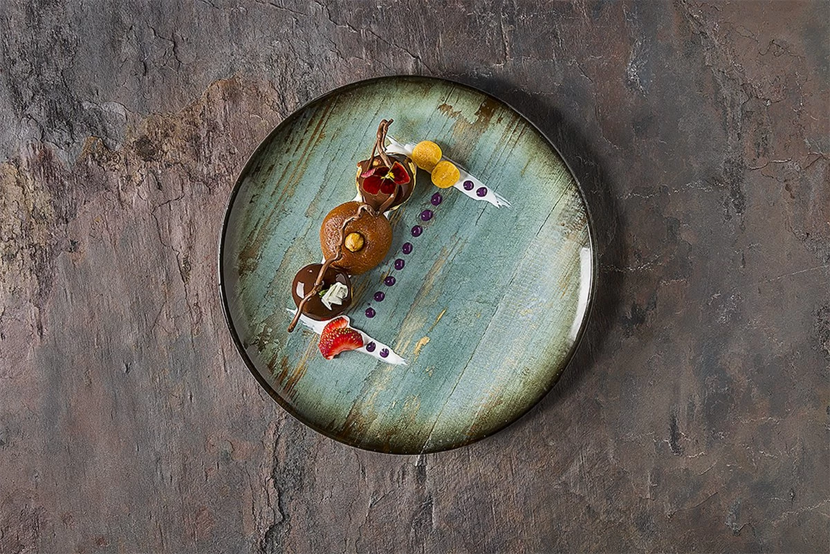 Door gebruik te maken van de verrassende harmonie van groene en heldere kopertinten, spreekt Madera Mint Collection chefs aan die op zoek zijn naar een ander en ambitieus speelterrein voor hun presentaties. Met indrukwekkende toonovergangen en willekeurige crack-effecten, versterkt de collectie de achtergrond bij de maaltijd; laat de scène toch over aan het eten zelf, ondanks zijn intense en dominante aanwezigheid.