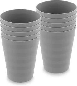 De In Round kunststof bekers bestaat uit een set van maar liefst 10 bekers. De bekers zijn gemaakt van duurzaam kunststof. Ze zijn geschikt voor de afwas en daardoor herbruikbaar. Ze zijn zowel verkrijgbaar in drie kleuren; grijs, groen en wit. De bekers zijn 9 cm lang, 8,5 cm breed en 15,5 cm hoog.