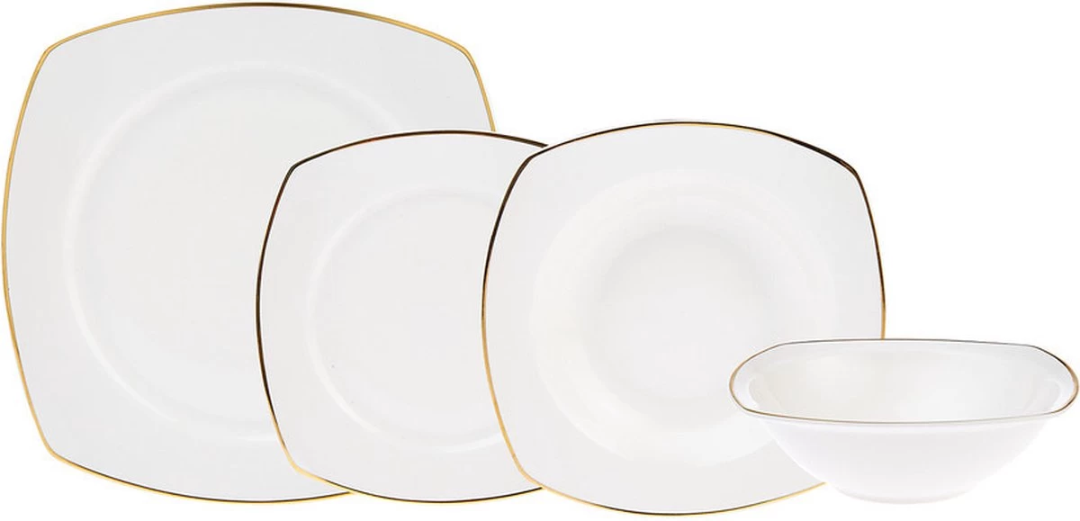 | Verpakkingsinhoud | Karaca Adelia 24 stuks 6 persoons porselein gouden half vierkant serviesset |