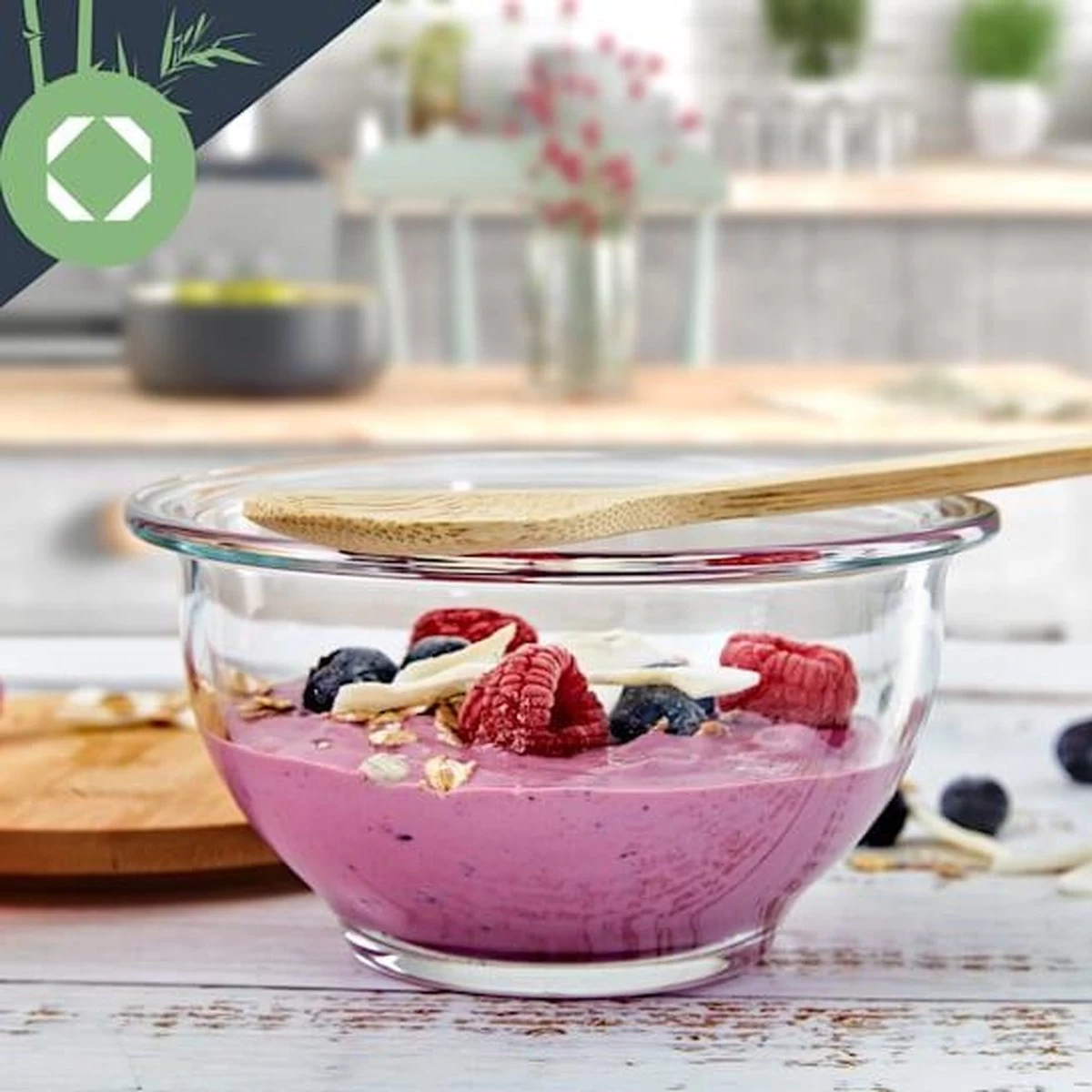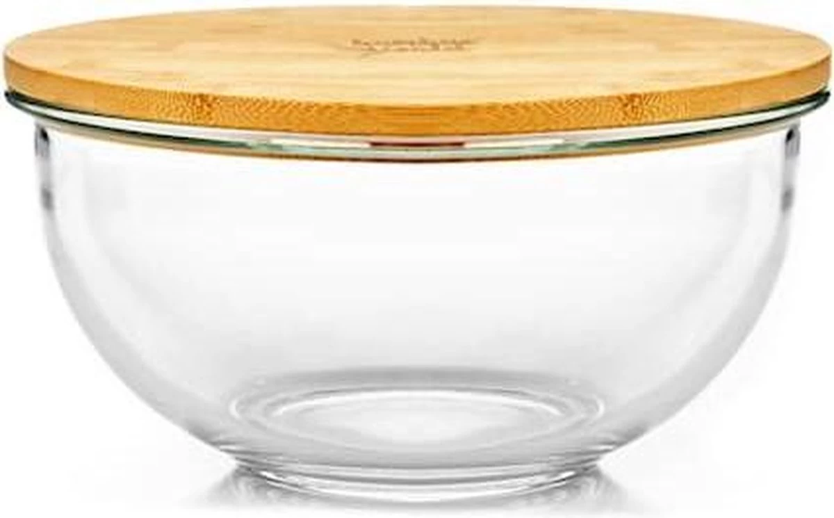 - Allrounder: veelzijdige glazen schaal met bamboe deksel