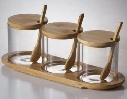 Suikerkom / Suikerpotje Glas Met Bamboe Houten Lepel En Deksel 520 ML