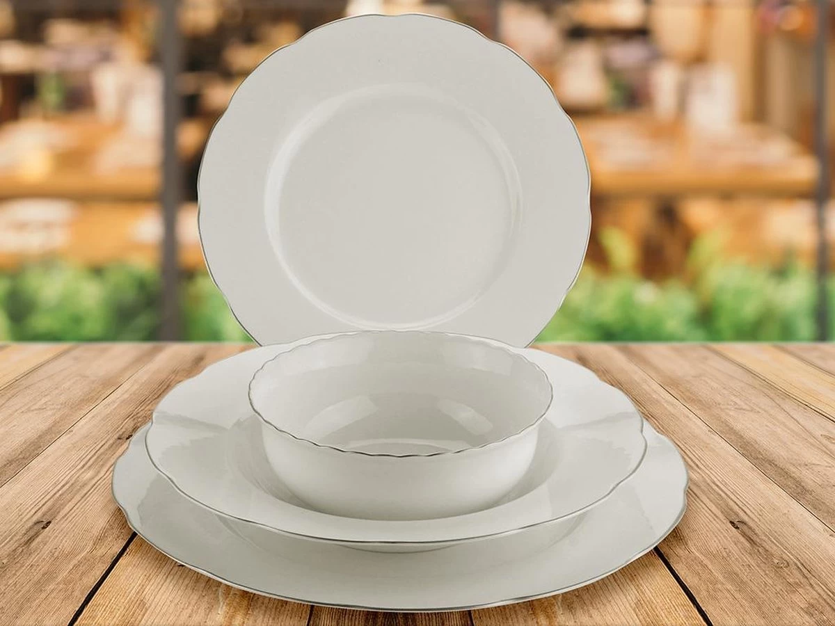 | Verpakkingsinhoud | 6 servies borden 25 cm (rond) 6 diepe borden 21 cm (rond) 6 dessert borden 19 cm (rond) 6 kommen 16 cm (rond) |