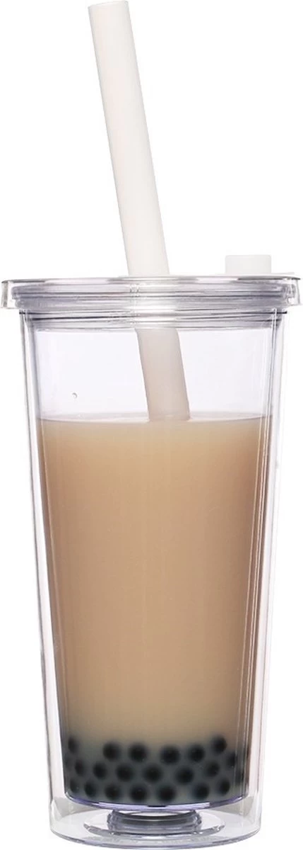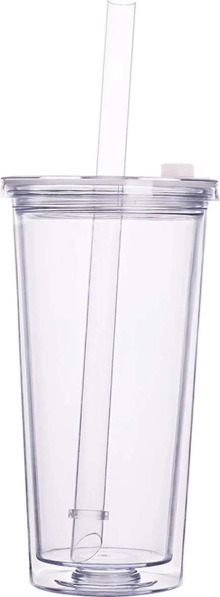 Drink altijd en overal je drankjes met deze herbruikbare drinkbeker. Door de grotere omvang van het rietje drink je gemakkelijk verschillende soorten drankjes, zoals smoothies, milkshakes en bubble tea. De drinkbeker heeft een inhoud van 550ml. Dit is voor de meeste de ideale hoeveelheid, niet te groot en niet te klein. De dubbele wand zorgt voor goede isolatie, hierdoor blijft je drankje koud of warm. De drank is afgelsoten en wanneer je de beker per ongeluk omvalt komt er alleen vloeistof door het rietje naar buiten. Daarnaast kan het rietje er ook uit worden gehaald en met de vastzittende silicone plug kan de deksel volledig worden afgesloten.