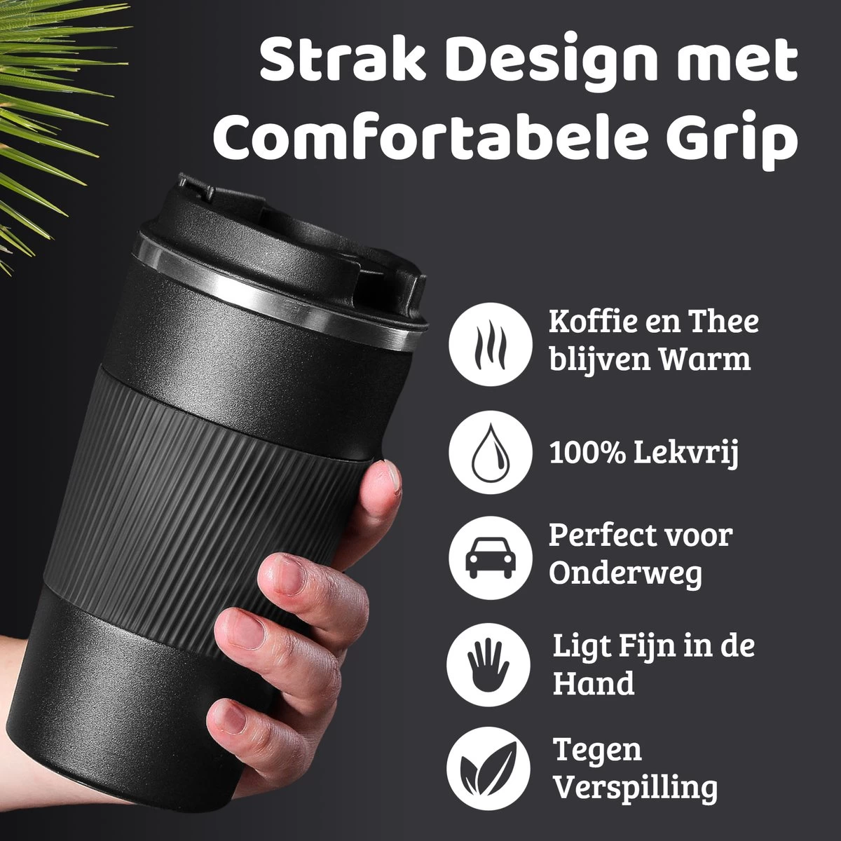 Dankzij het strak design met comfortabele grip ligt de koffiebeker fijn in de hand zonder zijn stijlvolle look te verliezen. Hij is 100% lekvrij dankzij de drinkopening en door de antislip bodem blijft de beker staan waar jij hem plaatst. De grote diameter aan de bovenkant zorgt ervoor dat je hem makkelijk kan schoonmaken.
