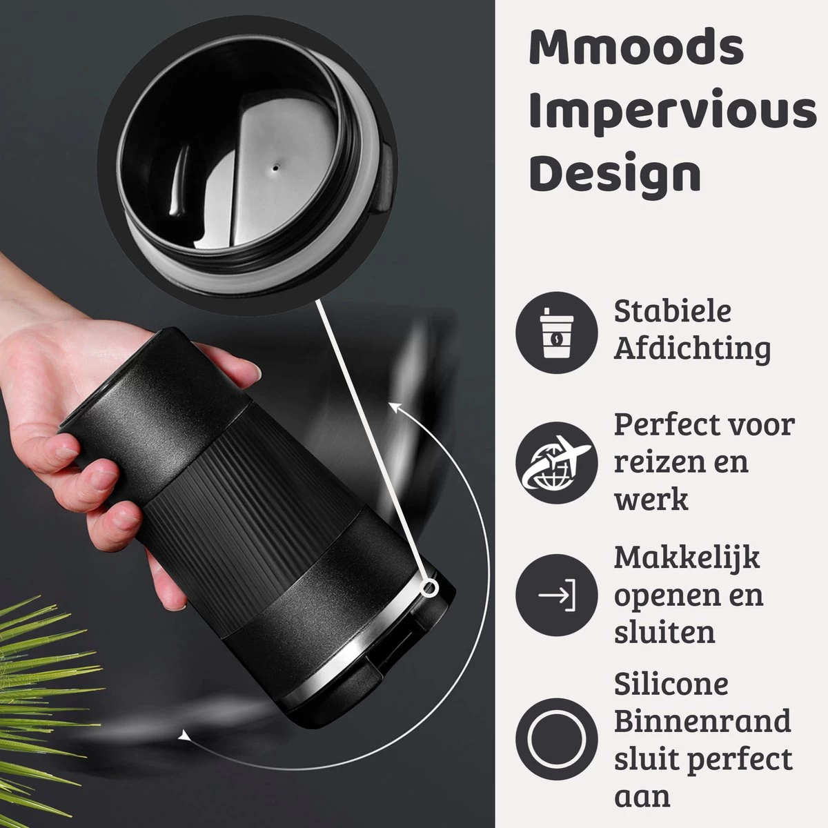 Het Mmoods Impervious design zorgt voor een totale afsluiting van de koffiebeker zonder condens te creëren. Door de silicone binnenrand sluit het deksel volledig aan op de beker en zorgt voor een stabiele afdichting.