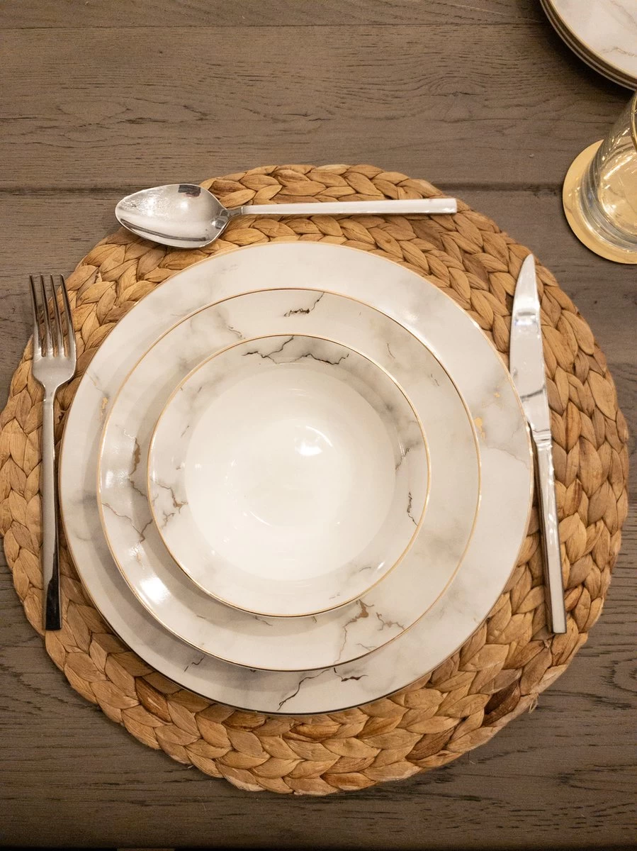 Selinex Porselein Serviesset Wit Marmer Goud 25-delig