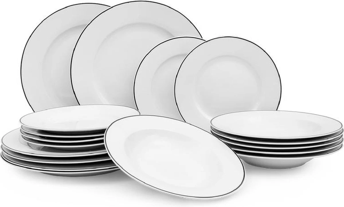 - 6 ontbijtborden, 6 dinerborden en 6 diepe borden