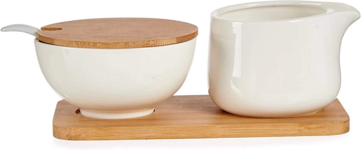 Suiker En Melk Serveren Setje Van Keramiek Met Bamboe 19 Cm
