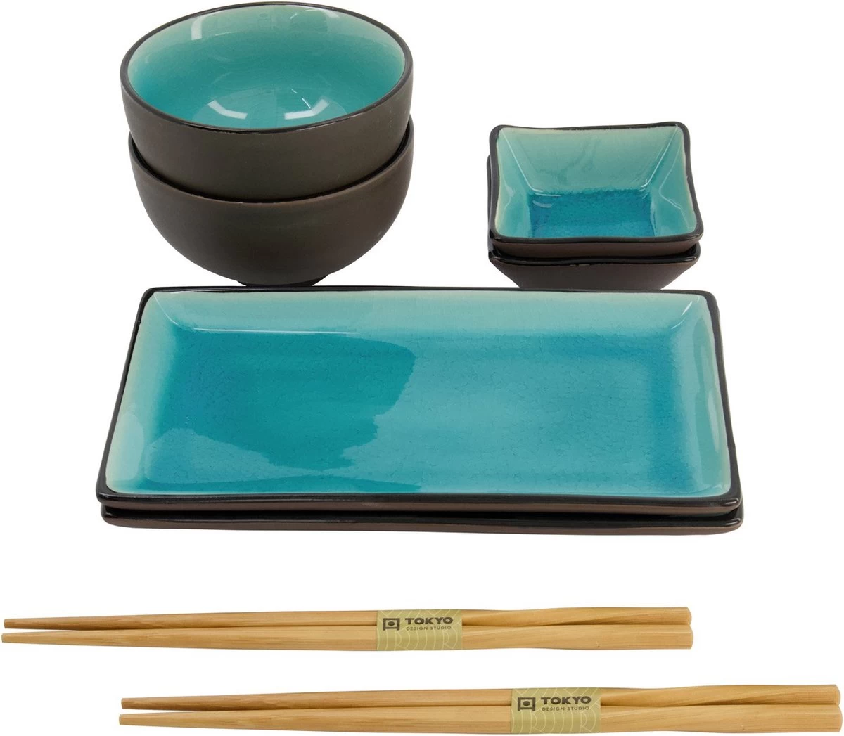 8-delig Sushi servies voor 2 personen in luxe geschenkverpakking Eet je sushi in stijl met dit prachtige Japanse sushi servies Glassy Blue. Deze set is compleet; hier zit alles in wat je nodig hebt voor het opdienen van een heerlijk sushi diner. Door de luxe geschenkverpakking ook ontzettend leuk om als cadeau aan een sushi liefhebber te geven.