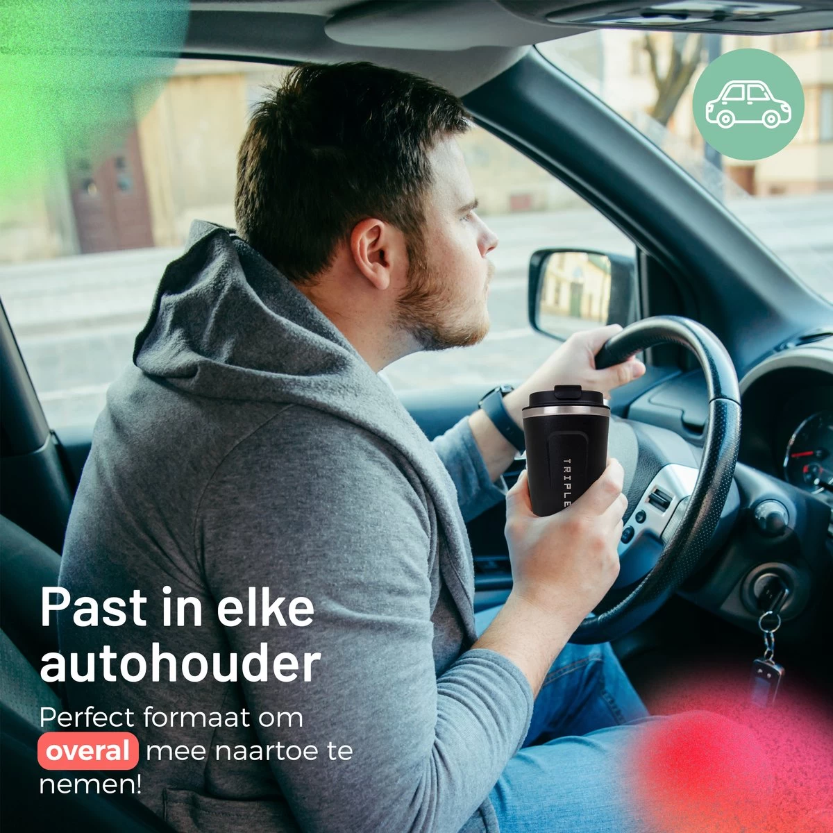 Triple J® Koffiebeker To Go – Thermosbeker – BPA & Lekvrij – 380ml – Zwart