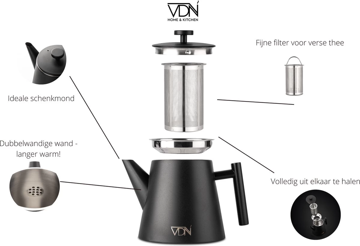 Ben jij op zoek naar een dubbelwandige theepot? Of wil je eens jouw favoriete kruidenthee in het groot zetten in plaats van één kopje met een thee ei? VDN is net zoals jij een echte thee liefhebber en heeft daarom aan alles gedacht voor de beste thee!